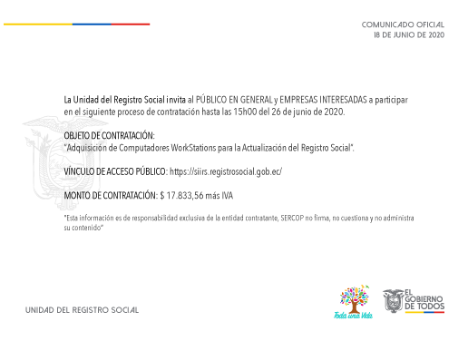 LICITACIÓN PÚBLICA NACIONAL PARA LA CONTRATACIÓN DE LAS OBRAS Y EL SUMINISTRO E INSTALACIÓN DE LOS VARIOS SISTEMAS DEL EDIFICIO DE LA AGENCIA DEL REGISTRO CIVIL, IDENTIFICACIÓN Y CEDULACIÓN EN LA CIUDAD DE PORTOVIEJO, PROVINCIA DE MANABÍ.